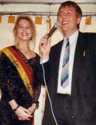Carola Baumgarten und Animateur René Zind begrüßten mit großem Hallo das närrische Volk, ehe das Programm in die verschiedenen Galaxien abhob... (aus: Wiesbadener Tagblatt 22.02.1993)
